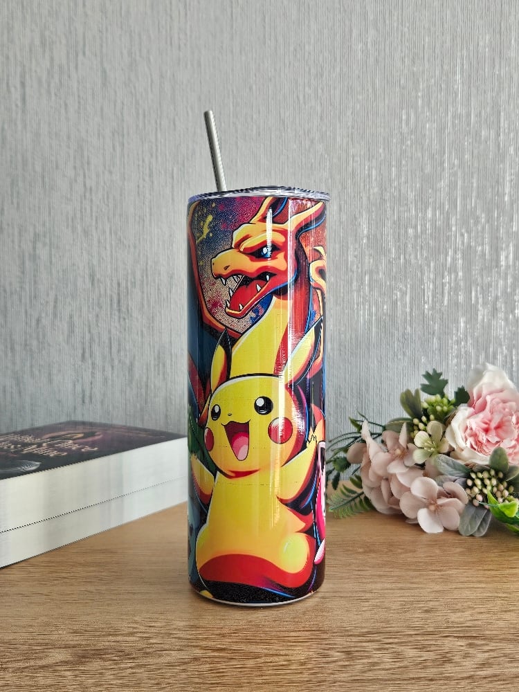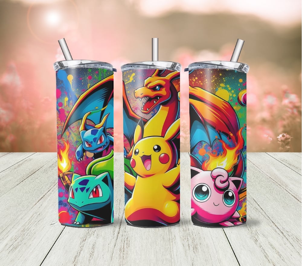 Unleash your inner trainer with this vibrant 20oz tumbler featuring a crew of colourful animated creatures in a bold, splatter-style design. Whether you're sipping your morning brew or fuelling up mid-adventure, this insulated drinkware brings a nostalgic pop-culture punch to your everyday routine.