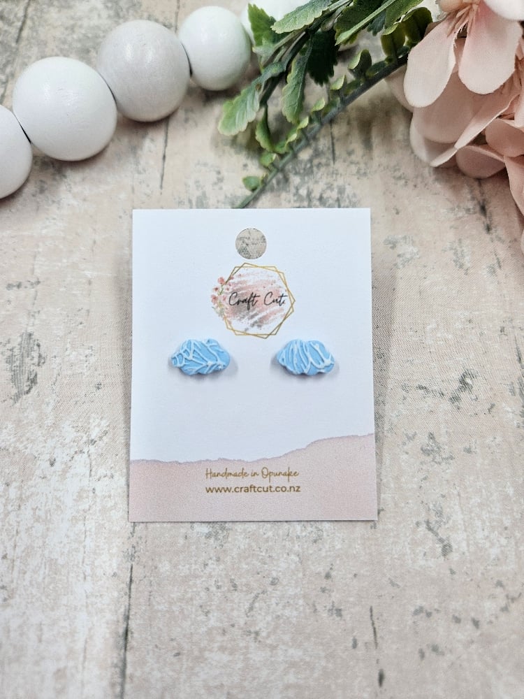 These light blue polymer clay studs feature an embossed textured surface that adds subtle detail to a simple design. Lightweight and easy to wear, they’re perfect for everyday style.