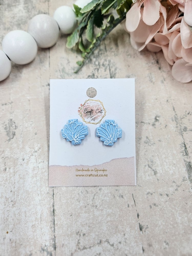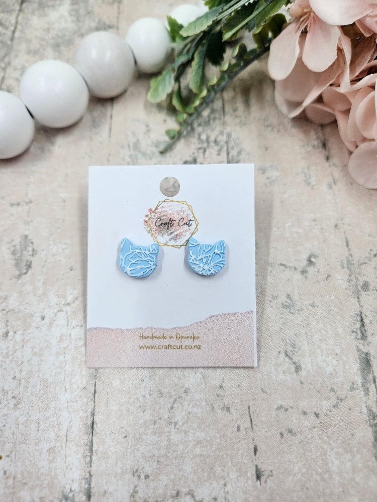 Blue Embossed Polymer Clay Stud Earrings (multiple styles)