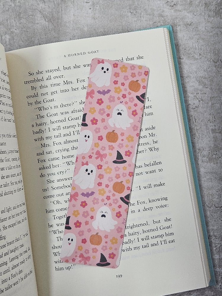 Hand-designed ghost themed bookmarks. Printed and laminated for a smooth, durable finish that holds up to everyday use while adding a little bit of fun to your pages.
